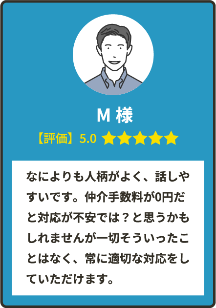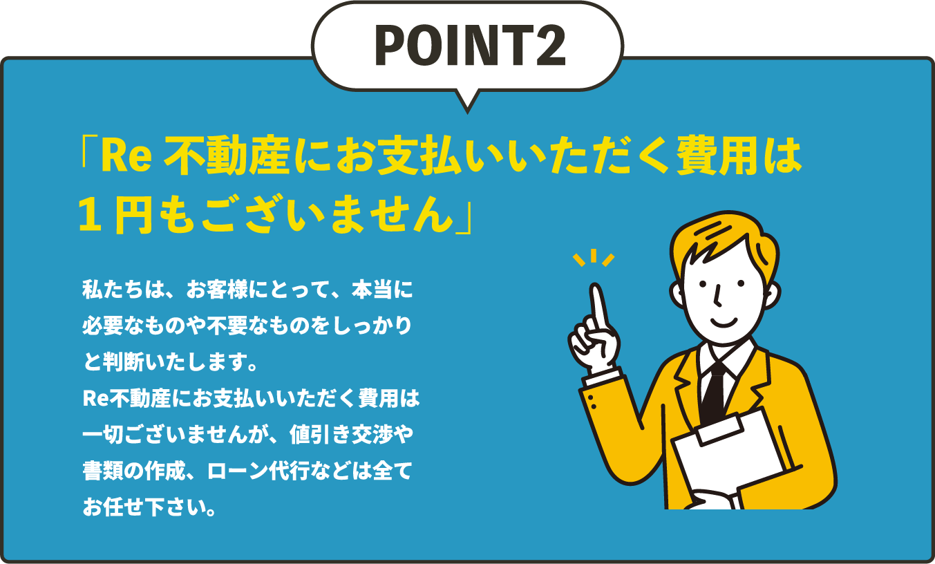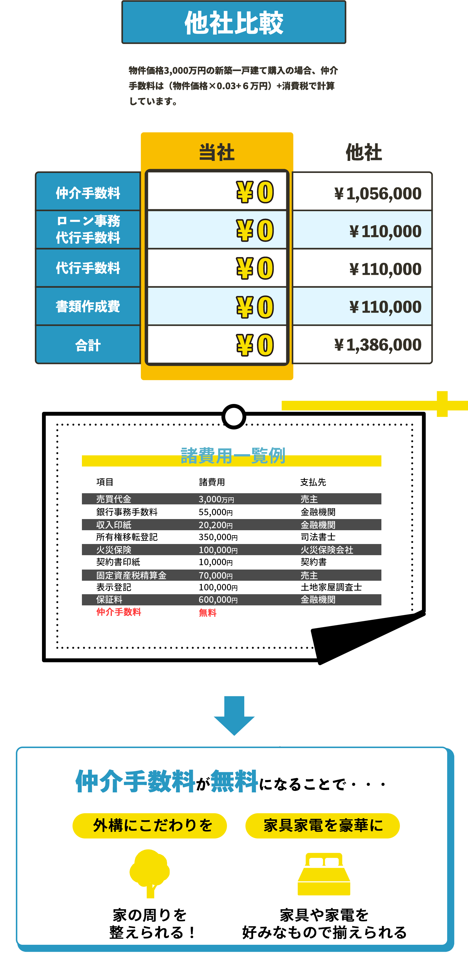 すべて無料です。当社では仲介手数料をいただいておりませんので、物件探しから書類作成代行、ローン代行まで全て無料で承らせていただいております。 まずはお気軽にご相談ください。